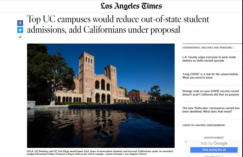 为了缓解这一现状,当地有关部门才考虑“削减州外和国际学生的名额,以便为更多的加州当地居民腾出位置”。
