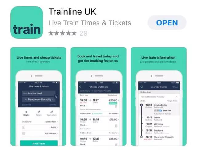 另外呢,如果觉得取票太麻烦,这里再给大家推荐一个很 popular 的 app —— TrainLine.