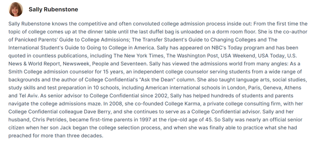 对于这个问题,我们一起来看看曾在史密斯学院(Smith College)担任15年招生顾问的萨莉·鲁本斯通(Sally Rubenstone)是怎么说的。