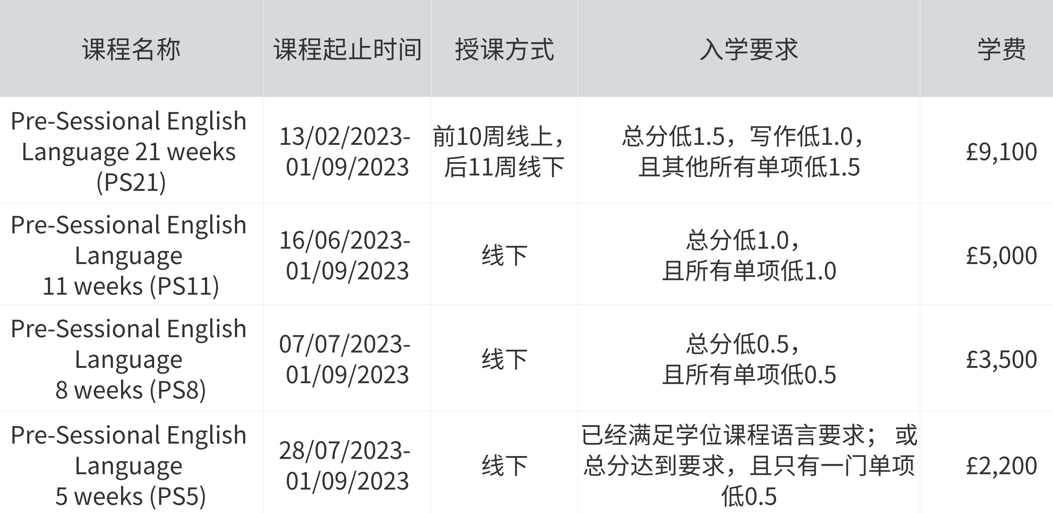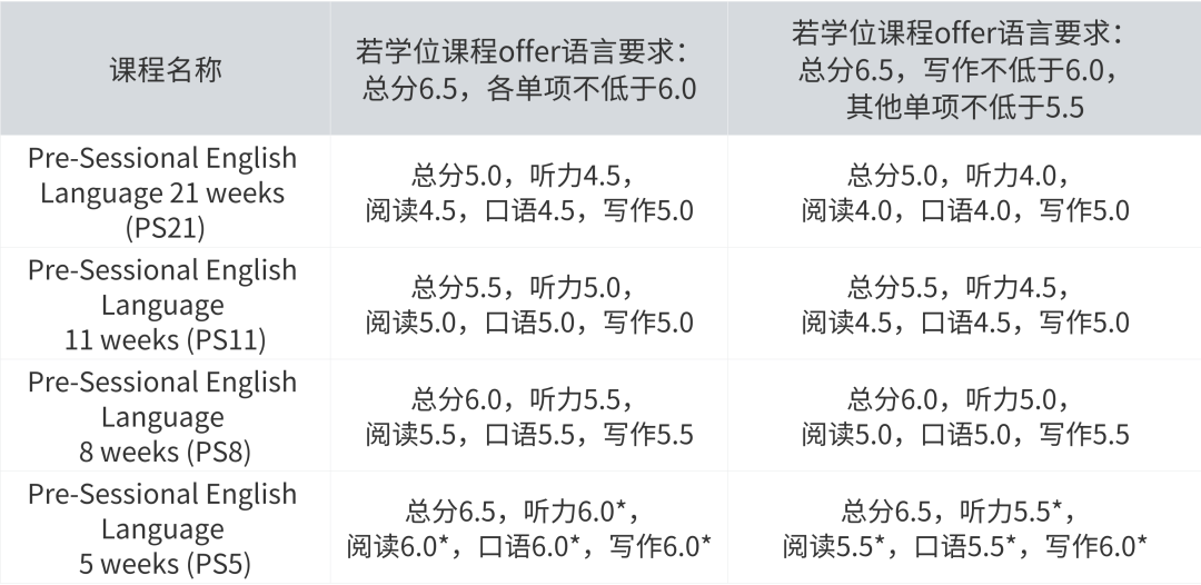 注意:需要提供UKVI语言成绩配读学前语言课。