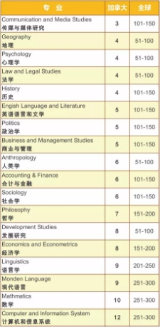 从最新出炉的2018QS专业排名中即可见一斑:包括了文科、社科、商科、心理、法学、计算机等各个专业方向,均位居加拿大前10左右: