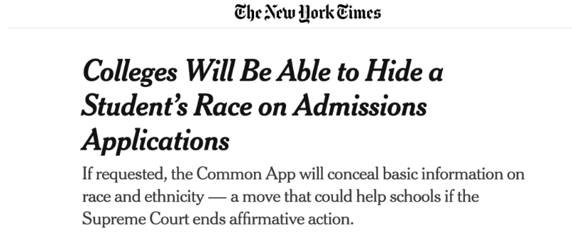 首先,单从这次的改革来说,虽然学校可以隐藏学生的种族信息,但是整个申请表中可以体现学生种族的信息还有很多。例如有经验的招生官可以从学生的姓名中判断学生的种族,或者学生可以在文书或者活动列表中透露关于种族的信息。