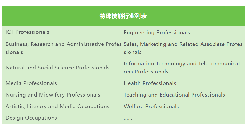 2年以后转为爱尔兰永居签证称为Stamp 4(这时候就不用跟雇主绑定在一起了,换工作或者更甚至没工作都不是问题,自由工作生活无限制啦);值得一提的是,特殊技能工作签证持有者的配偶也可以合法在爱尔兰工作。它是针对爱尔兰紧缺人才提供的工签,当然这种工签是向满足一定条件的人才发放的。首先是满足年薪超过32000欧元,其次是从事特殊技能名单上的工作。