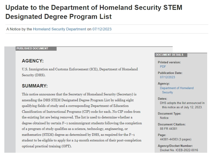2022年DHS更是扩大STEM专业领域范围,一次性增加了22个新专业。