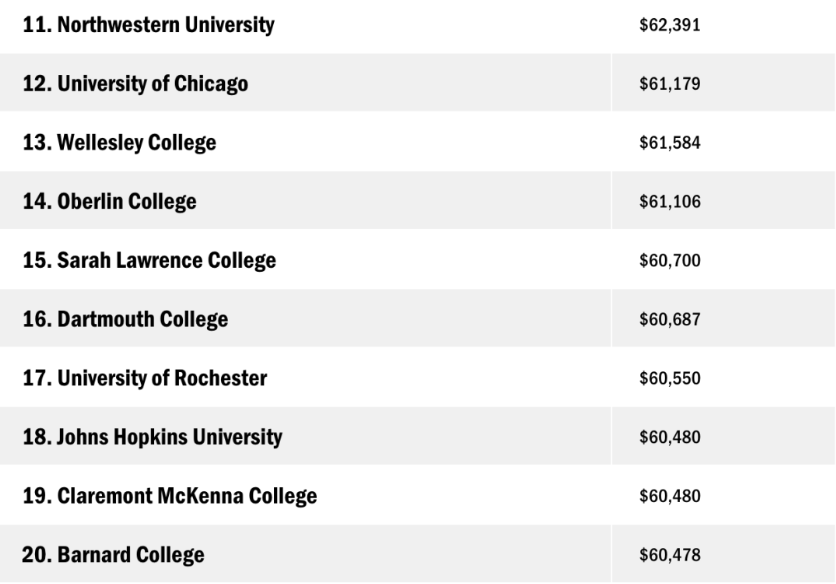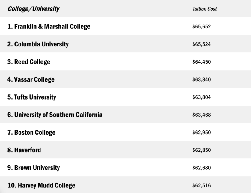 关于谁才是最贵大学这件事儿,F&M和楼下的哥大向来难分伯仲,在这次的排名中,F&M凭借128块钱的“优势”问鼎。
