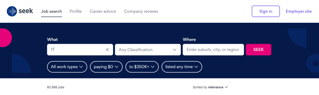在澳大利亚最大的求职网站SEEK上搜索IT关键字,就会发现超过6万个职位。年薪在10万澳元以上的比比皆是。