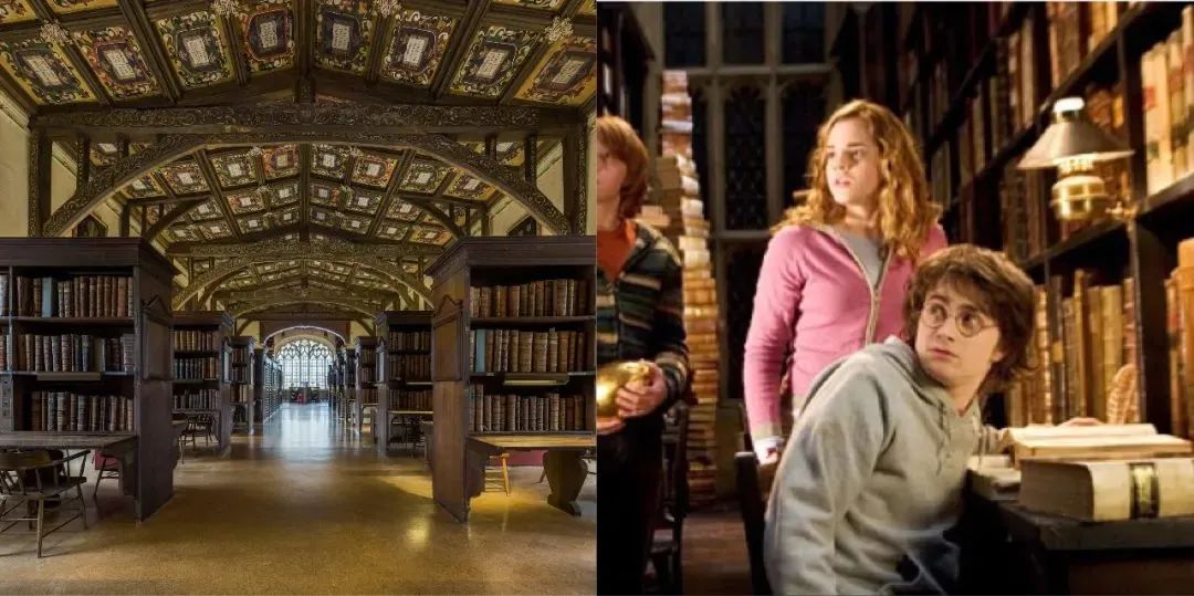 牛津大学的波德莱恩图书馆(Bodleian Library)也是哈利波特的拍摄地之一,这座图书馆占地面积庞大,被分作四个区域,其中的公爵图书馆成为片中霍格沃兹学校图书馆。