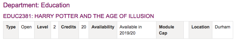 此外,为了满足追随霍格沃兹魔法学院而来到杜伦大学的哈迷们,学校还专门开设了《哈利·波特与幻想时代》选修课。