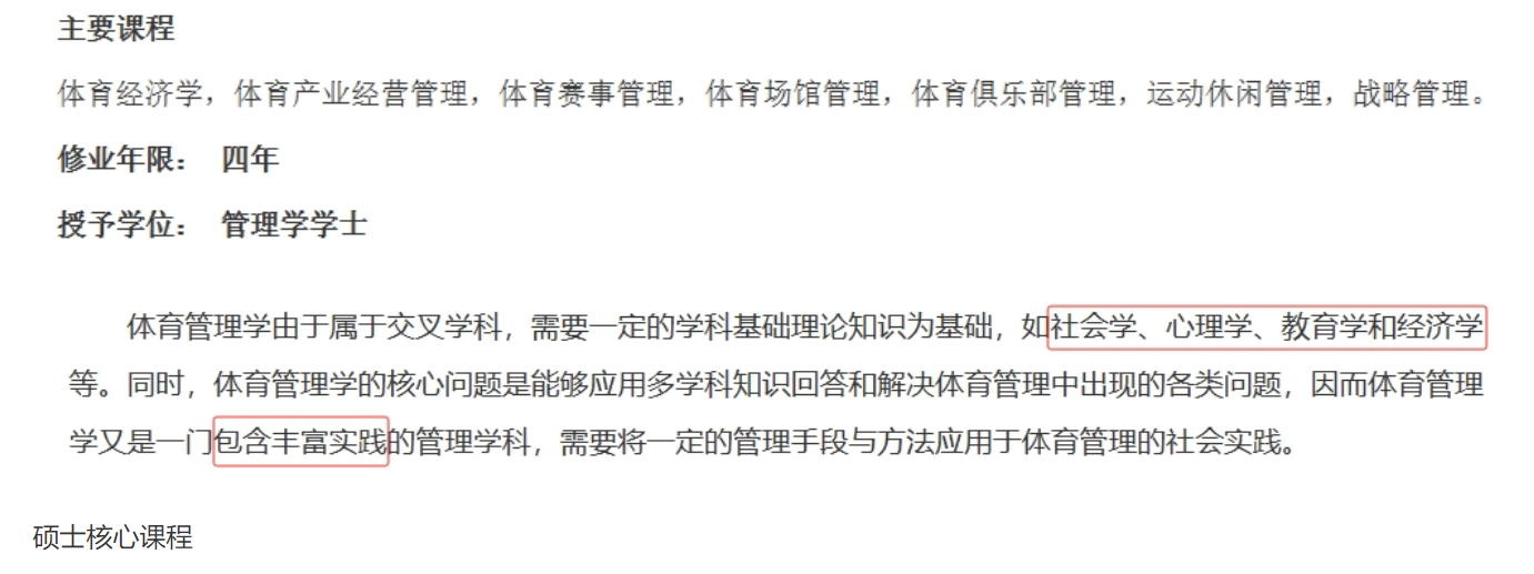 硕士 核心课程涉及 法律、管理、体育营销 等领域内容