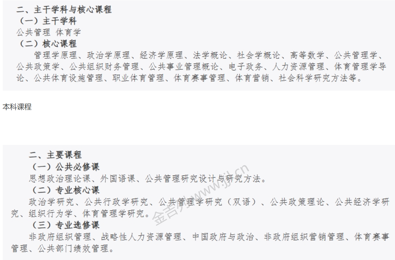 该校体育管理专业设置在经济管理学院下,提 供本科、硕士和博士学位 ,这里主要针对 本科和硕士学位课程 进行详细介绍: