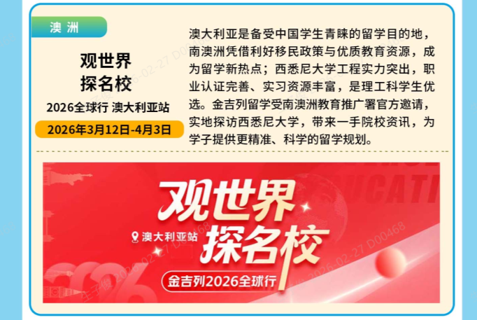 活动七:观世界,探名校——2026全球行 澳大利亚站