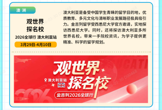 活动六:观世界,探名校——2026全球行 澳大利亚站
