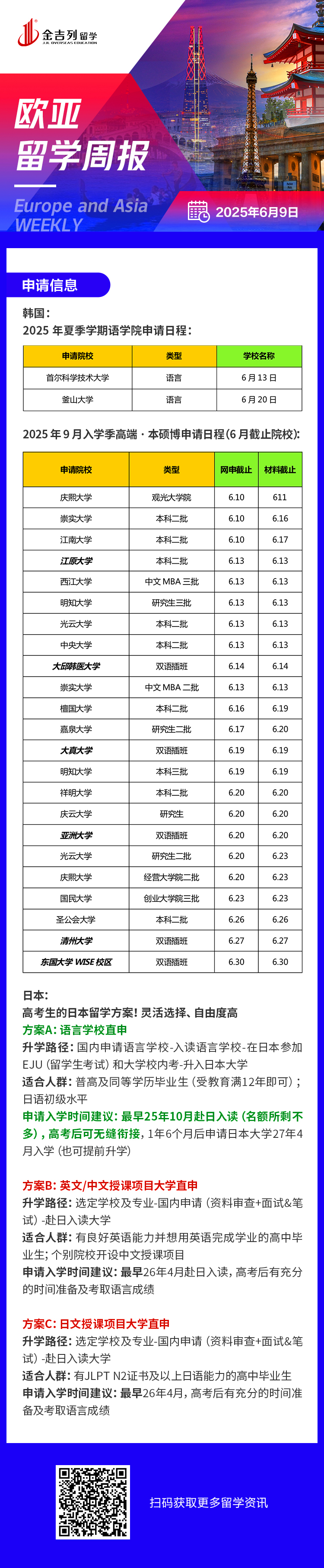 2025年9月入学季高端·本硕博申请日程(6月截止院校)