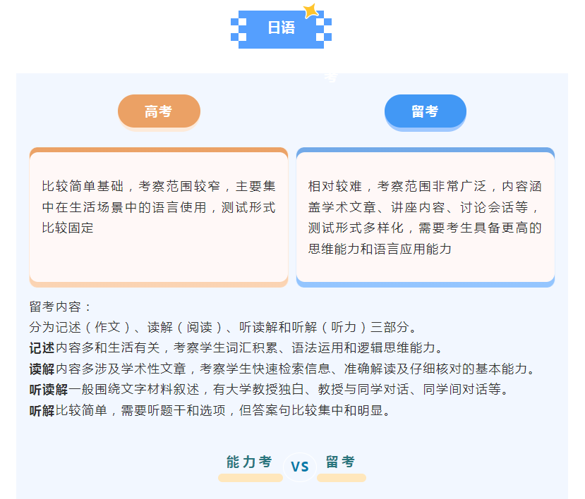 高考大家都不陌生,千军万马过独木桥,其压力可想而知。 如果不想卷高考,选择日本留学,走留考这条路,会不会更容易考上理想的大学呢? 接下来就从各个方面对比中国高考和日本留考的区别 。
