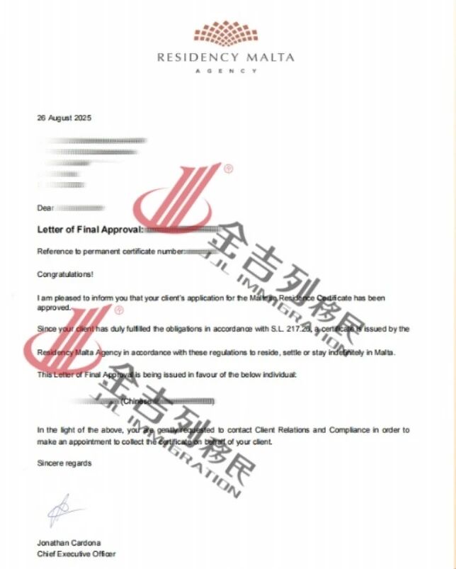 客户Z女士,为了2个孩子的教育以及国内业务的全球发展决定办理移民。客户在国内有多家公司,收入丰厚,为了给孩子提供优质的教育以及国内业务的全球发展,去年找到金吉列规划身份,通过和金吉列顾问的咨询选择了马耳他移民,在文案团队移民评估后定制了专属方案,最终顺利获批!