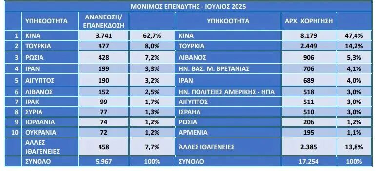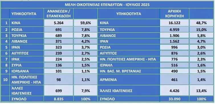 近日,希腊移民与庇护部发布最新统计数据:截至2025年7月31日,在投资移民领域,希腊“黄金签证”主申请人数量为23,221人,其随行家属数量为42,035人。据此计算,通过投资移民途径获得希腊长期合法居留身份的投资者及其家属总人数已超过65,000人。