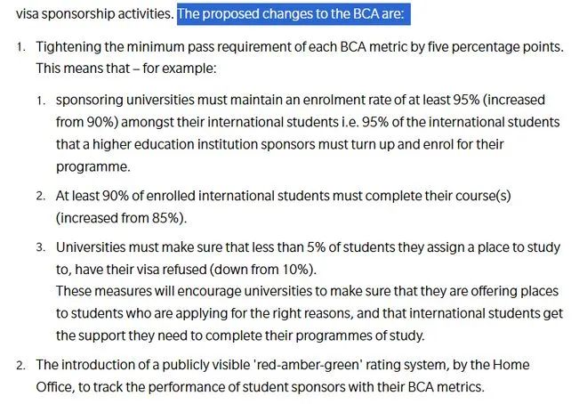 • 英国移民局将建立公开的“红 - 黄 - 绿”评级系统,跟踪“学生担保机构(如大学)”的BCA指标表现。