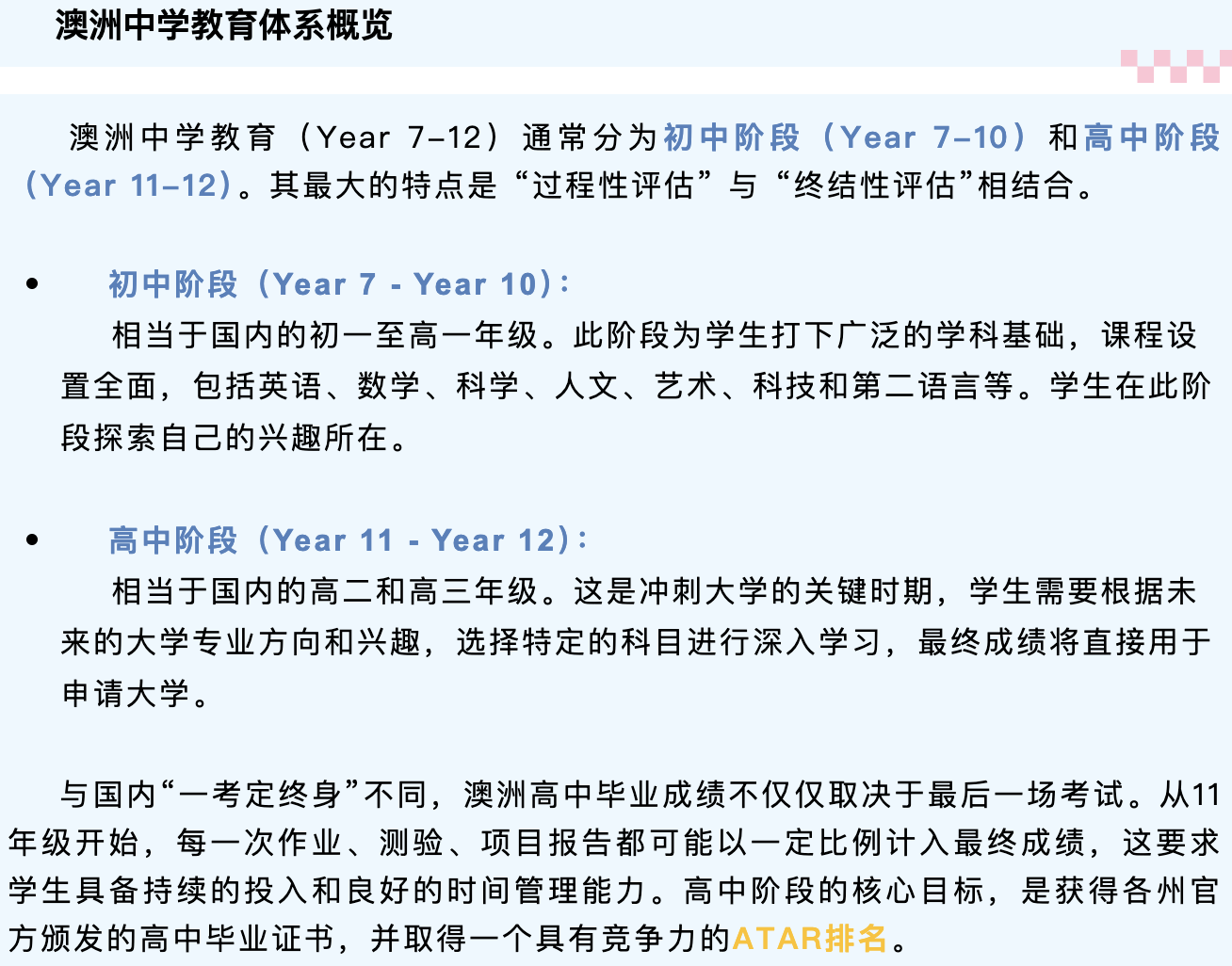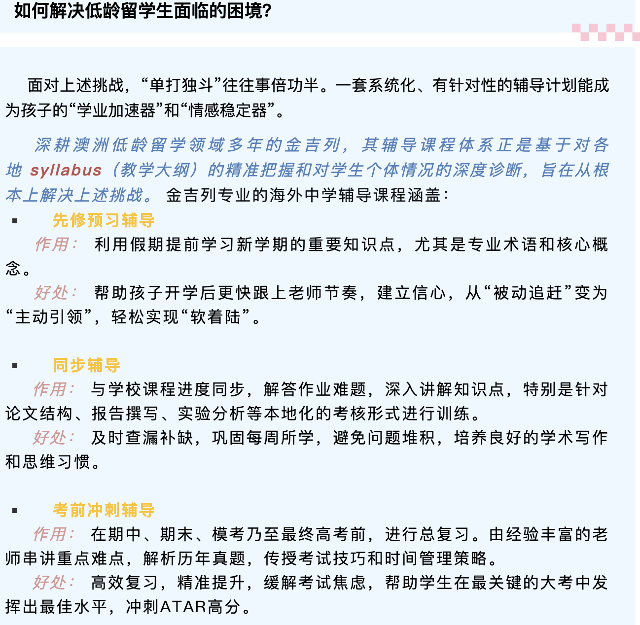 随着低龄留学热潮持续升温,澳洲以其优质的教育资源、安全的社会环境和包容的文化氛围,成为众多中国家庭的首选。然而,踏入一个全新的教育体系,孩子和家长们难免会遇到各种挑战。今天,我们就来深度解析 澳洲中学的教育体系 ,并聊聊如何通过科学的课外辅导,帮助孩子平稳过渡,赢在起跑线上!