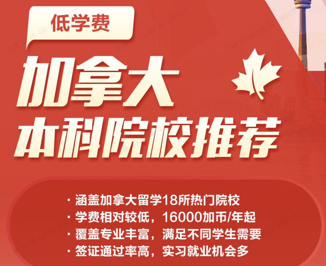 学费相对较低,16000加币/年起~