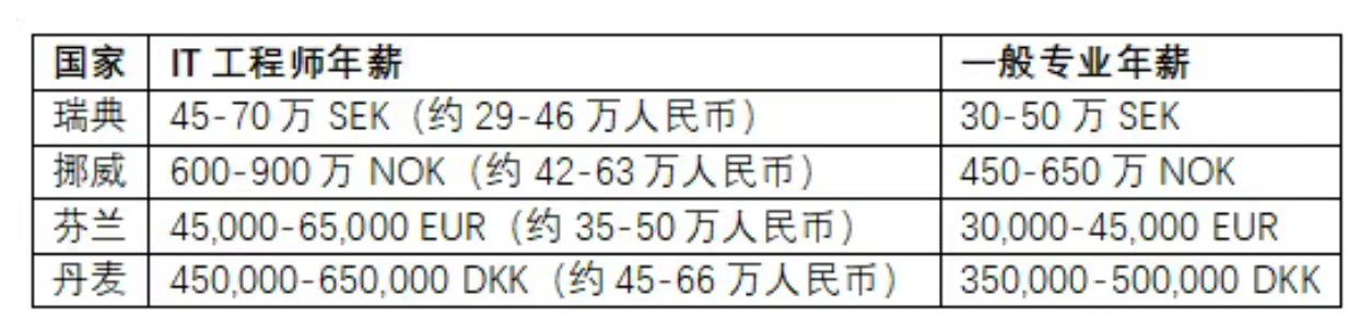 ● 瑞典税率约30%-35%;IT行业平均年薪50-60万SEK;