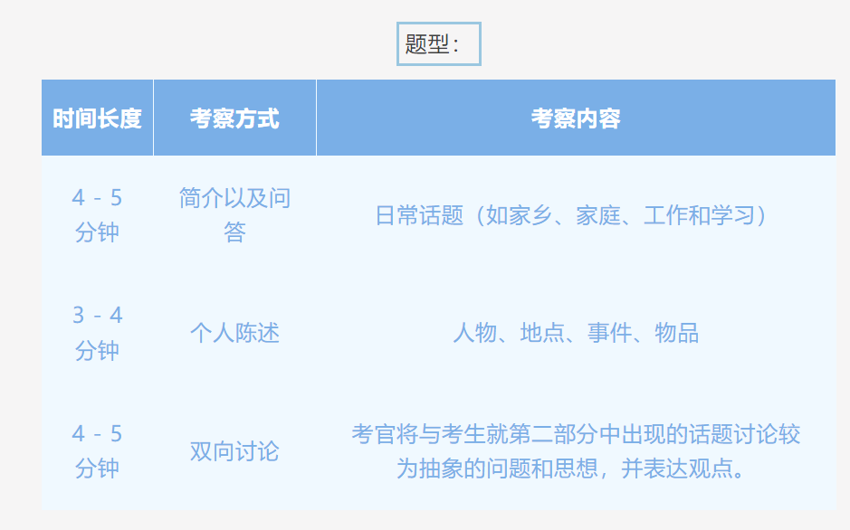 注:雅思口语的Part 1和Part 2是有题库的,考生可以根据题库 自行准备 ;