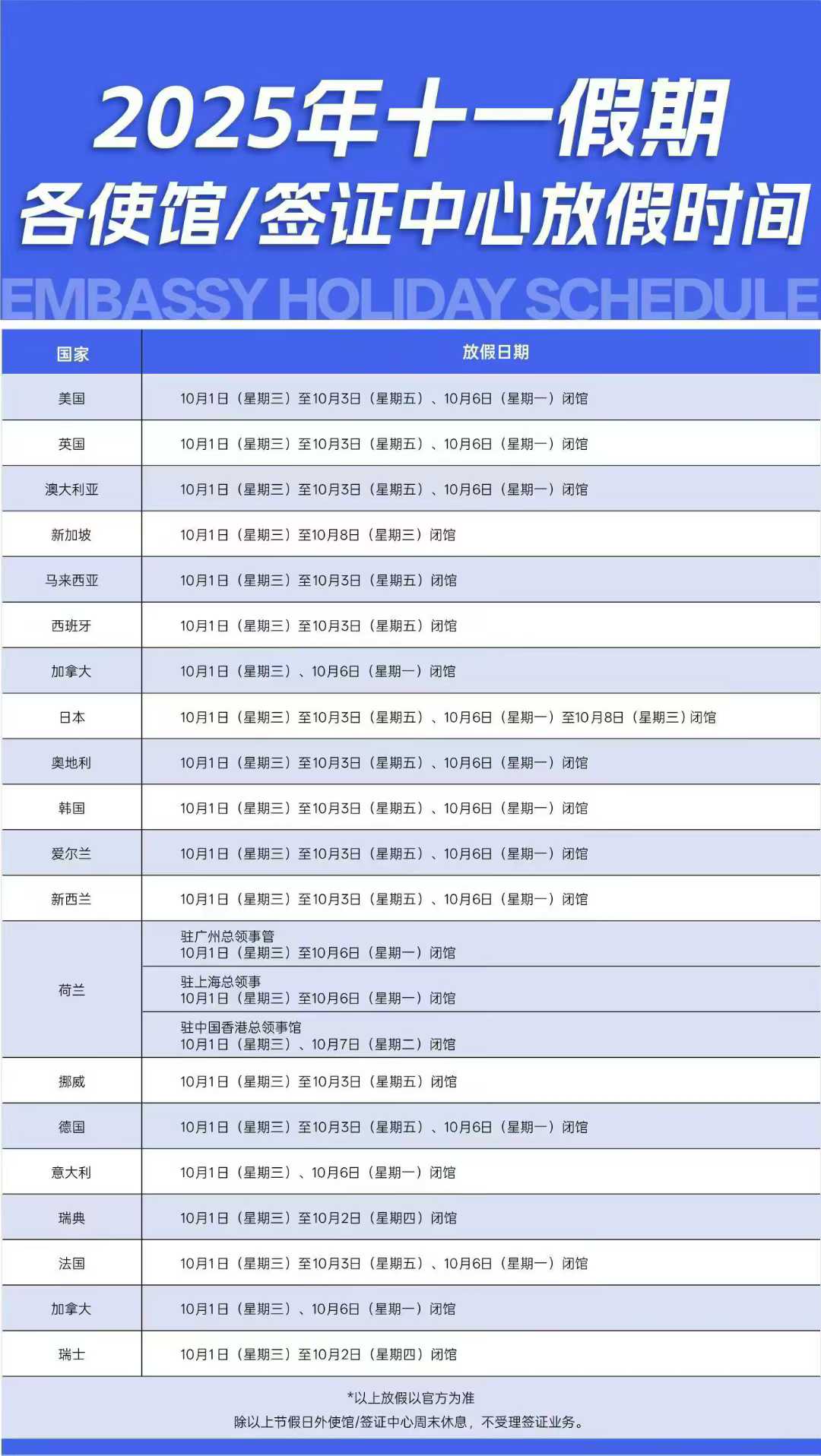 10月1日-10月3日、10月6日英国签证中心闭馆,请同学们一定错开这几天哈