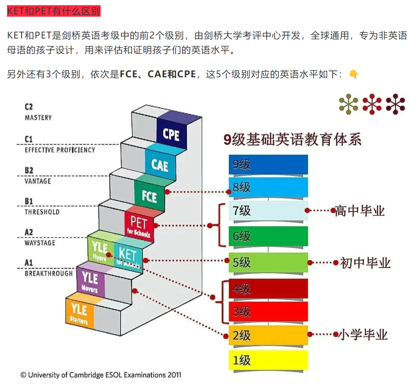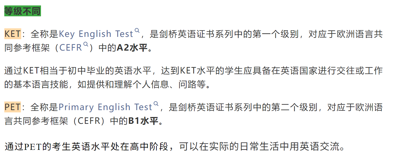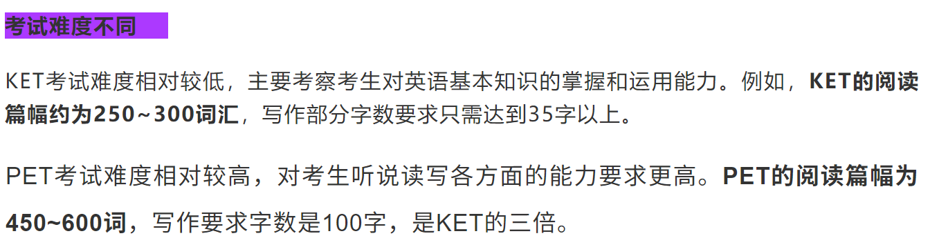 KET和PET是剑桥英语考试的两个级别, 在难度、词汇要求和备考时间有很大不同 。