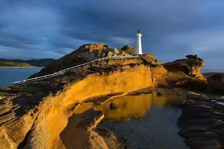 从怀拉拉帕的马丁堡驱车 90 分钟,就能抵达这座 “海岸皇冠上的宝石”。白色的灯塔矗立在悬崖顶端,背后是湛蓝的太平洋,海浪拍打着礁石,卷起雪白的浪花。沿着步道走到海滩,能看到新西兰毛皮海狮在礁石上晒太阳,运气好时还能邂逅跃出水面的海豚。傍晚时分,夕阳把灯塔染成金红色,随手一拍都是治愈系风景。