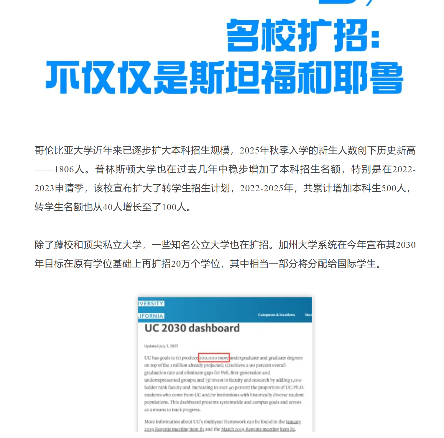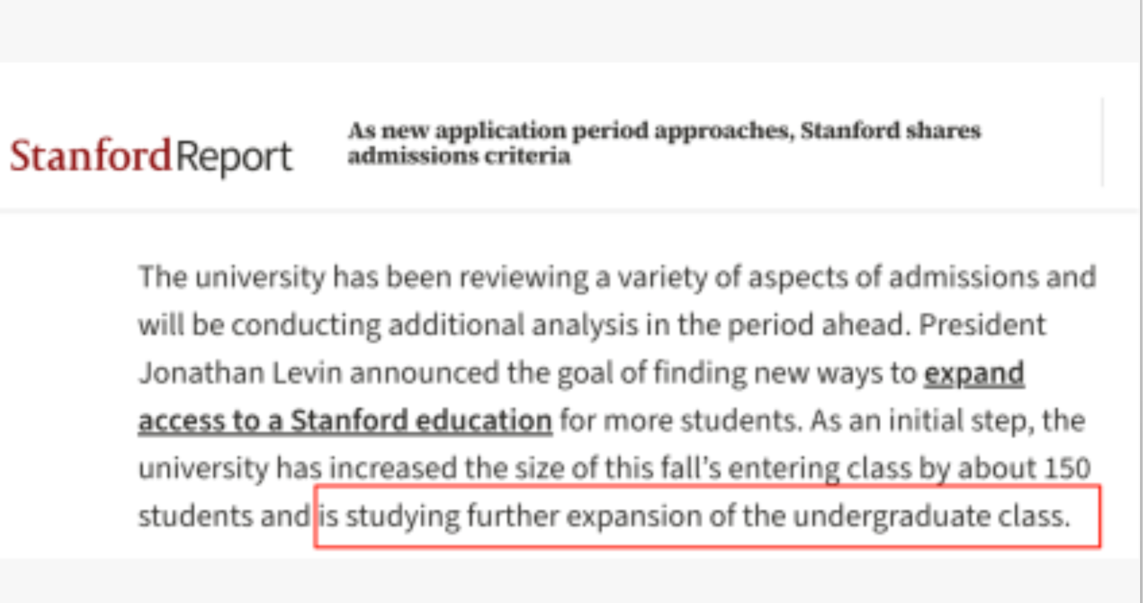 今年开始,美国多所顶尖大学宣布扩招计划,斯坦福大学、耶鲁大学等顶尖名校赫然在列。