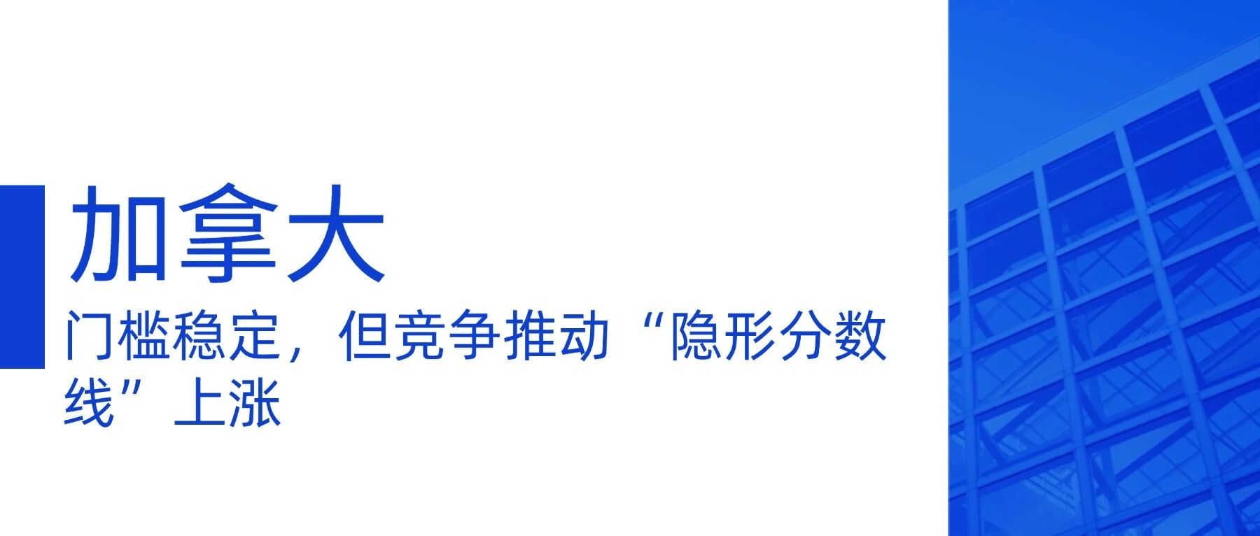 加拿大院校政策稳定,但随着申请人数激增,实际录取者的平均标化分数连年水涨船高。满足“最低要求”只是拿到了入场券,想获录取,成绩必须具有足够的竞争力。