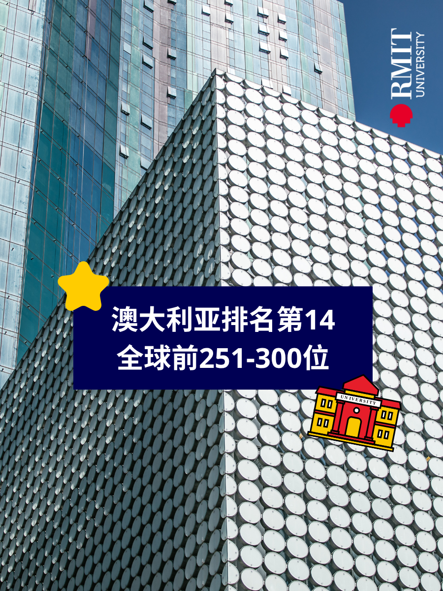 在最新发布 的Times Higher Education (THE) World University Rankings 泰晤士高等教育世界大学排名 中,RMIT位列澳大利亚高校第14名,全球排名稳居前251-300位(参与排名高校逾2100所)。