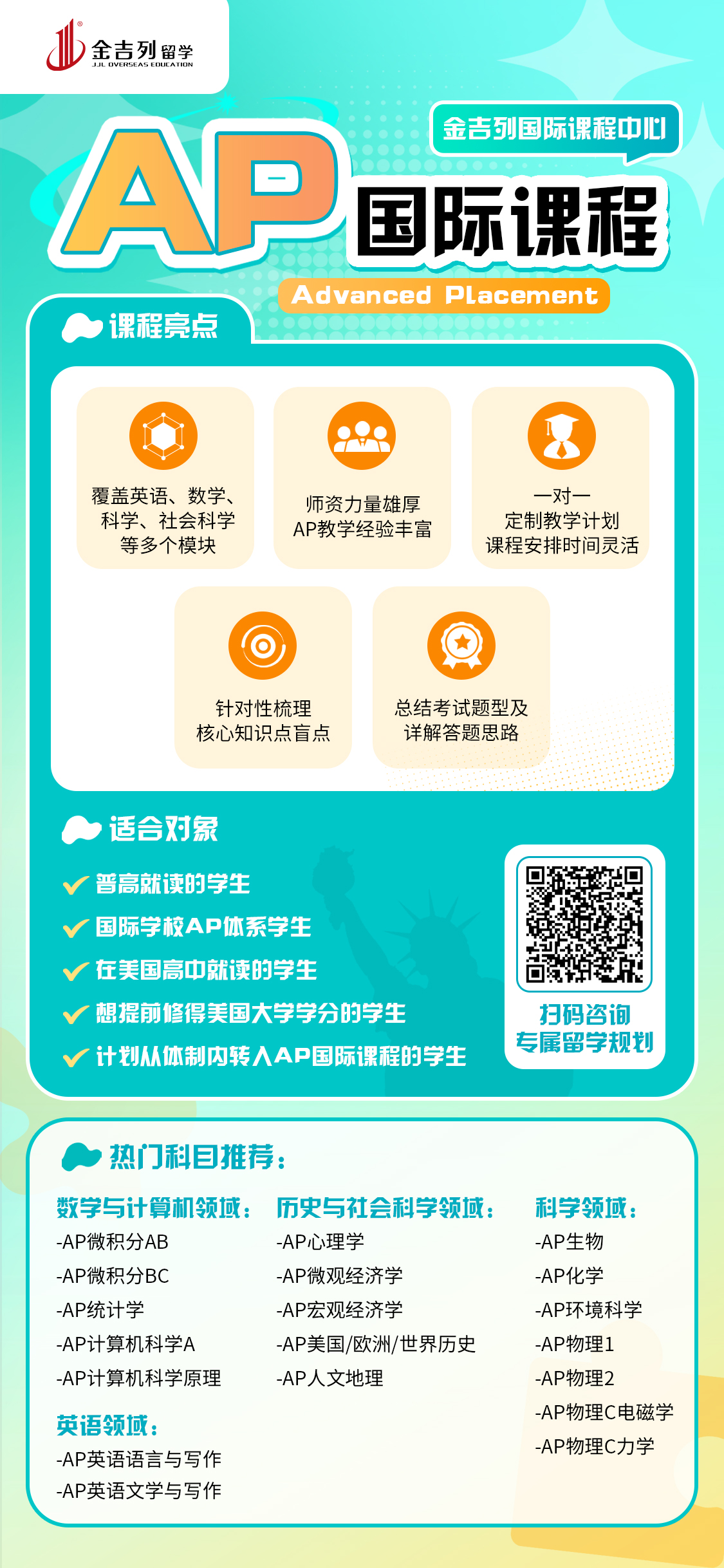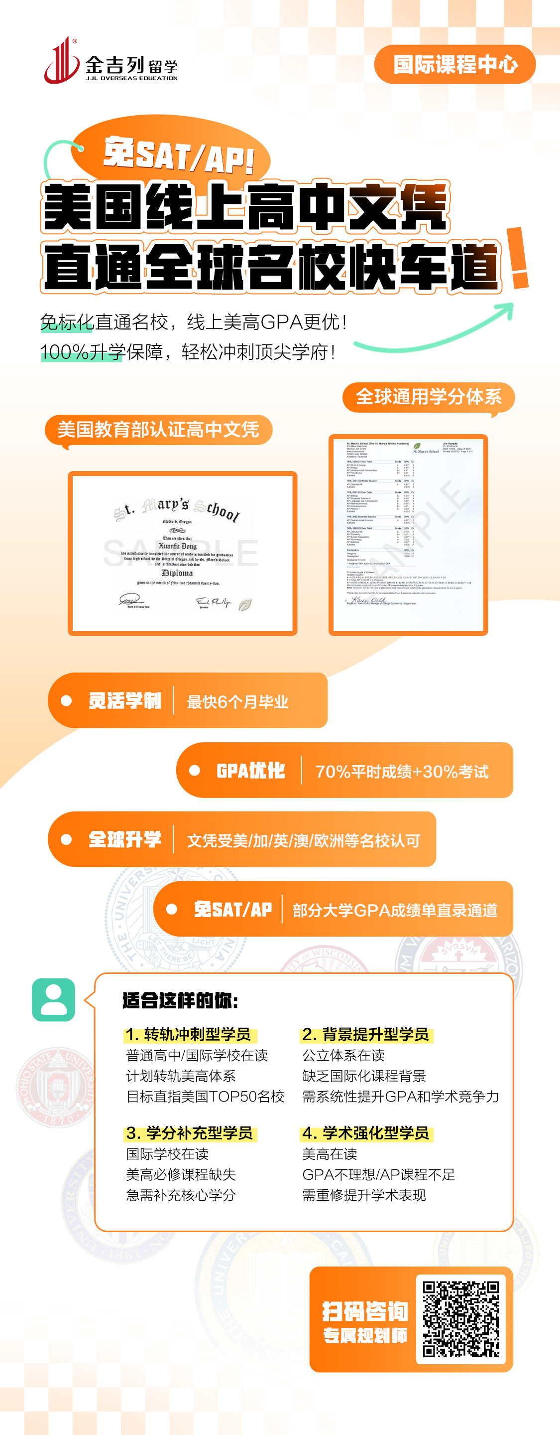 无论您是正在备战高考的普高生,还是寻求更优升学路径的国际课程体系学生,金吉列都能为您量身定制合适的国际课程项目,助您在留学申请中脱颖而出,抢占先机!