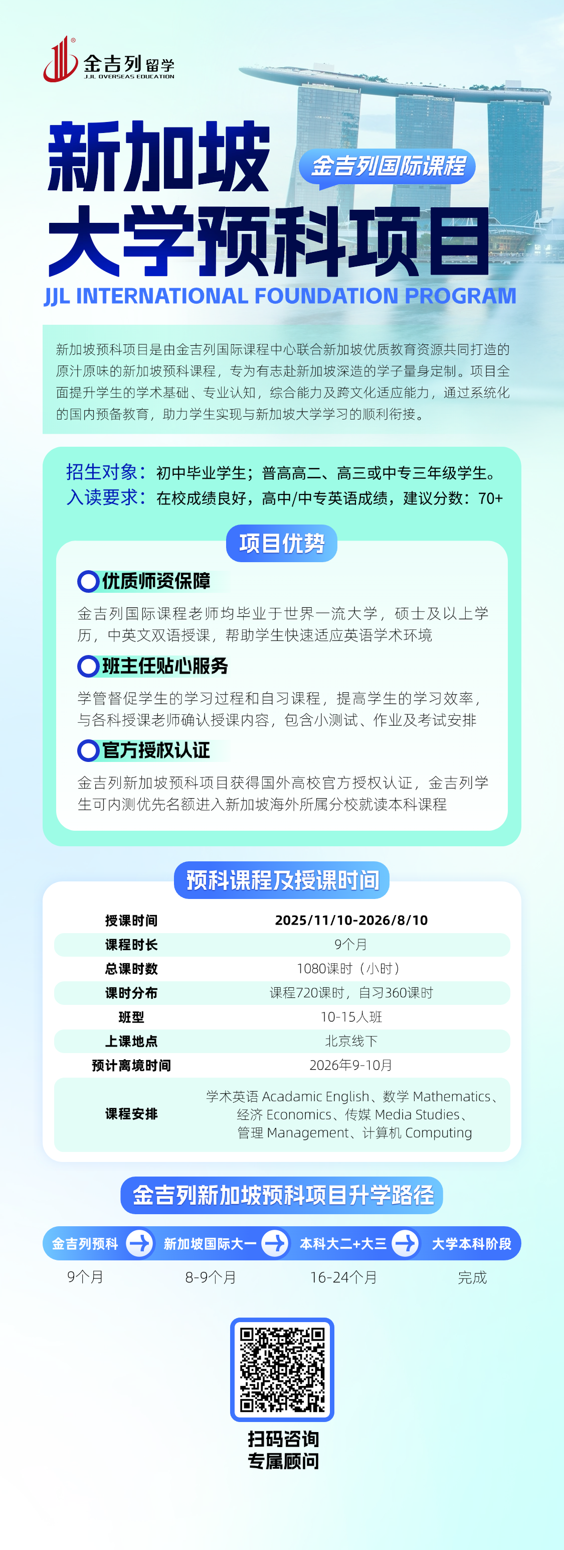 4、世界顶尖学府“跳板”:新加坡大学预科项目