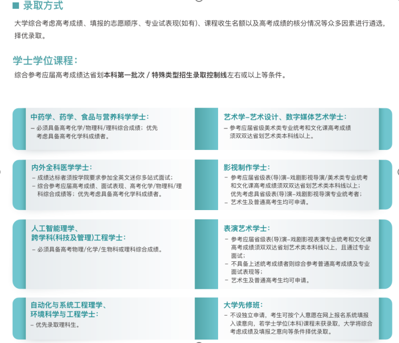 具有体育或艺术特长项目的申请者可在报名期内申请以特长生身份报读本校学士学位课程,成功通过面试获得特长生资格的学生,大学将结合其特长水平综合考虑录取,有机会优先获录取或优先获颁奖学金。