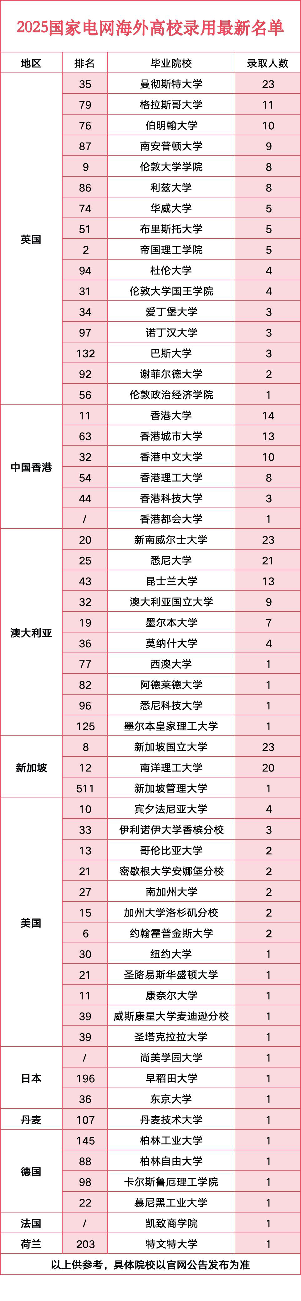 2025年国jia电网录取 317名留学生 ,这些留学生来自英国、美国、中guo香港等 64所海外院校 。