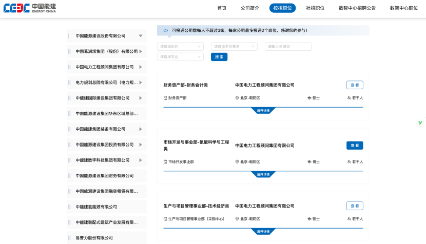 此次校园招聘岗位覆盖面广、数量多,大家可登录中国能建官网查询!