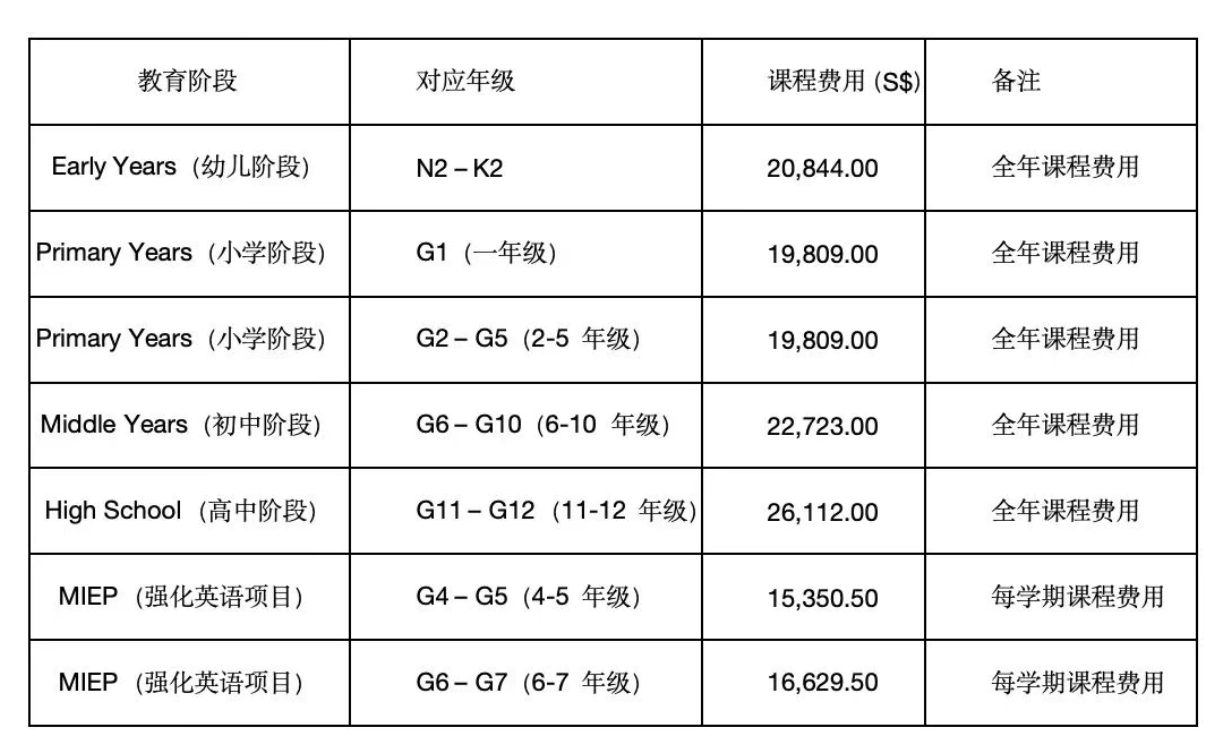 适用规则 :折扣仅适用于 “学费较低的孩子”(例如:若一个孩子读高中(全年课程费26,112新元),另一个读小学(全年19,809 新元),折扣将应用于小学阶段的课程费)。