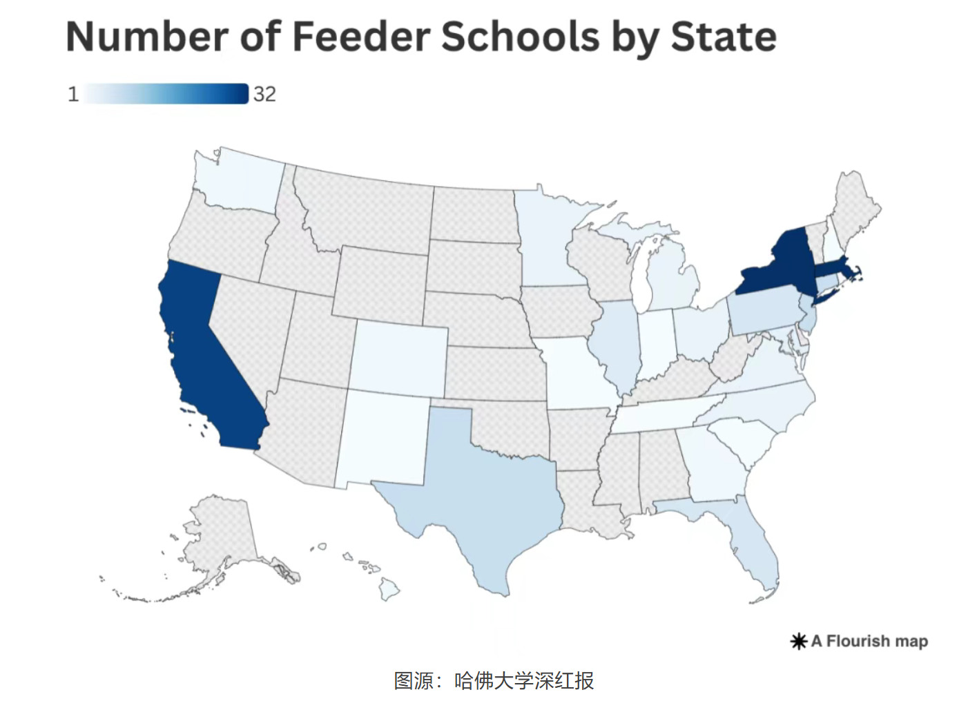 简单来说,就是位于马萨诸塞州和纽约州的高中接收到的优质教育资源更为丰富,录取结果上更占优势。