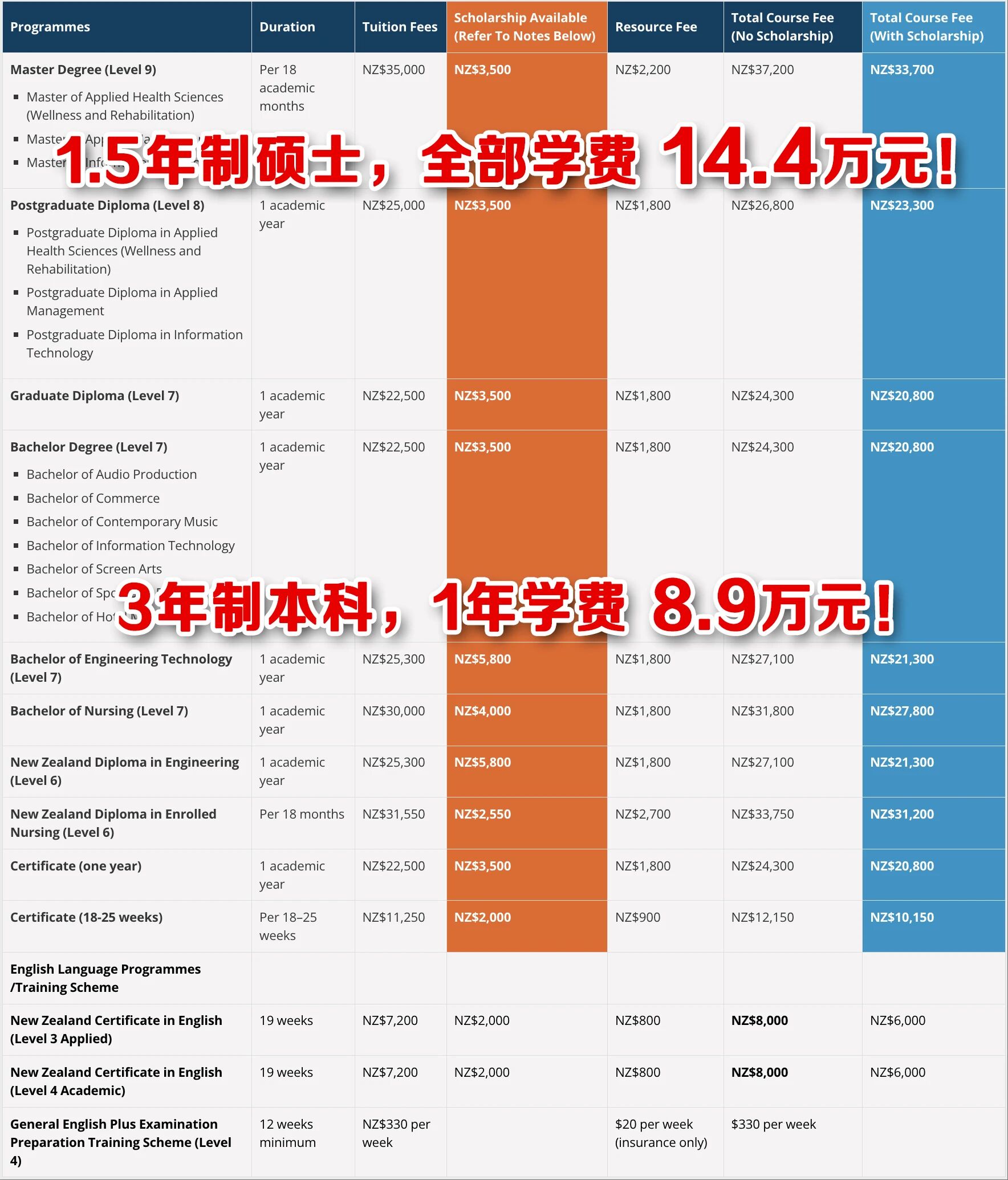 2026年学费: 35,000 纽币(全部课程),资料费 2,200 纽币。 奖学金减免后,只要 33,700 纽币!