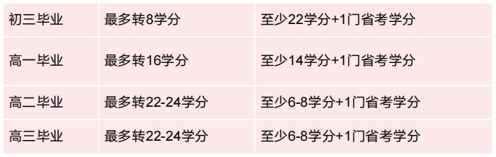 加拿大安大略省高中课程可接受中国从初三至高三毕业任何年级学生,不同年级所需学分灵活转化。中国学生短则可通过1学年的时间完成大学申请所需的12年级6门课程和其他OSSD毕业所需课程,是时间短、课程安排灵活的多国联申请升学途径。