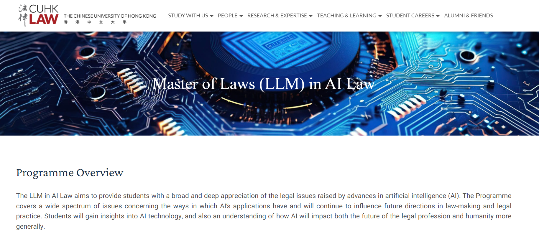 香港中文大学 法学院新增了Master of Laws in AI Law【人工智能法法学硕士】专业,此专业主要是针对人工智能相关的法学硕士,有人工智能领域方面的学生可以考虑一下此专业。