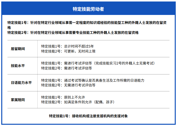 日本由于出生率低、人口老龄化严重,以中小规模企业为首的劳动力不足问题正在加剧,为了缓解这一社会问题,日本加强引进具有一定专业性和技能的外国人才,于是在2019年4月创立了特定技能制度。“特定技能”签证分为“特定技能1号”和“特定技能2号”。