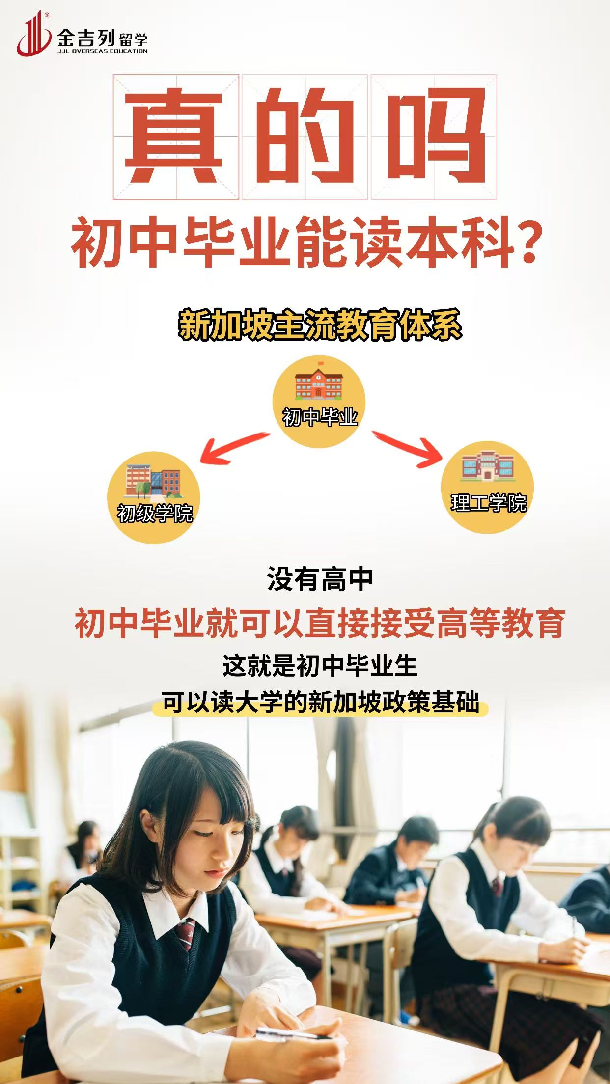 新加坡主流教育体系,初中毕业就可以直接接受高等教育,这就是初中毕业生可以读大学的新加坡政策基础。金吉列新加坡预科升学路径:9个月金吉列预科+8-9个月新加坡国际大一+本科大二、大三(16-24个月),大学本科阶段完成。