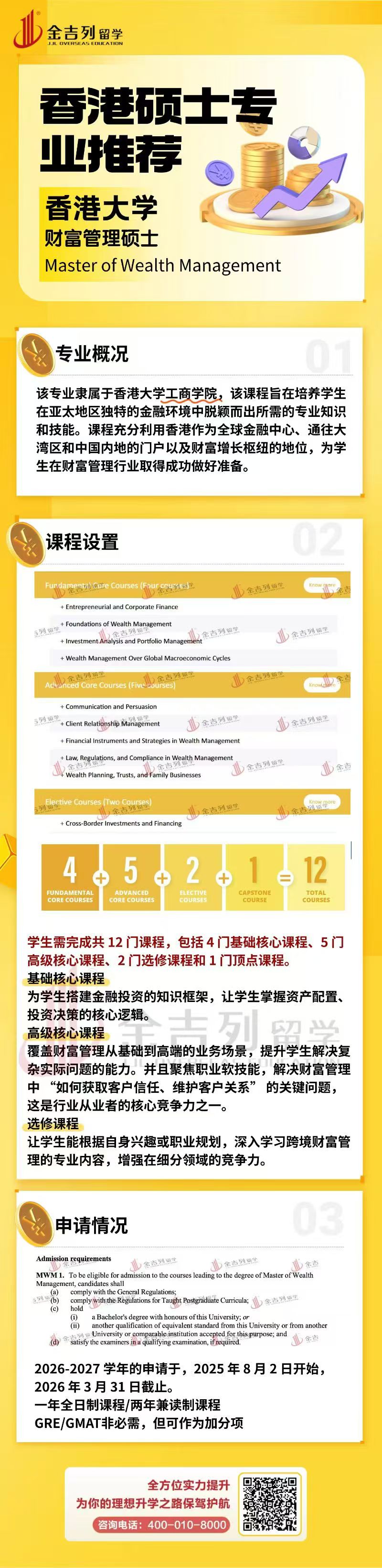 香港大学财富管理硕士Master of Wealth Management,隶属于香港大学工商学院,课程旨在培养学生在亚太地区独特的金融环境中脱颖而出所需的专业知识和技能,课程充分利用香港做为全球金融中心,通往大湾区和中国内地的门户以及财富增长枢纽的地位,为学生在财富管理行业取得成功做好准备。