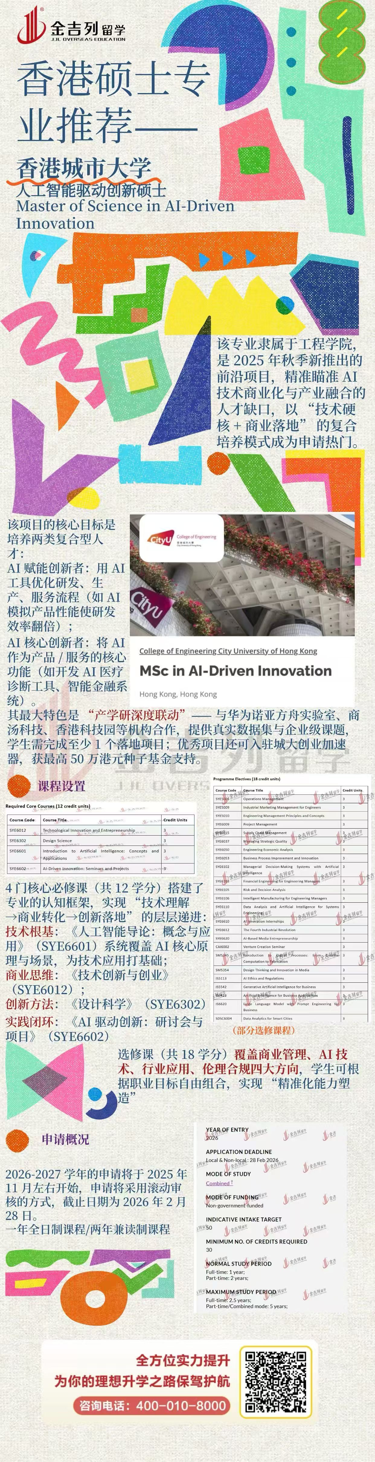 香港城市大学人工智能驱动创新硕士Master of Science in AI-Driven Innovation,该专业隶属于工程学院,是2025年秋季新推出的前沿课程,精准瞄准AI技术商业化与产业融合的人才缺口,以技术硬核+商业落地的复合培养模式成为申请热门。课程截止日期为2026年2月2日。
