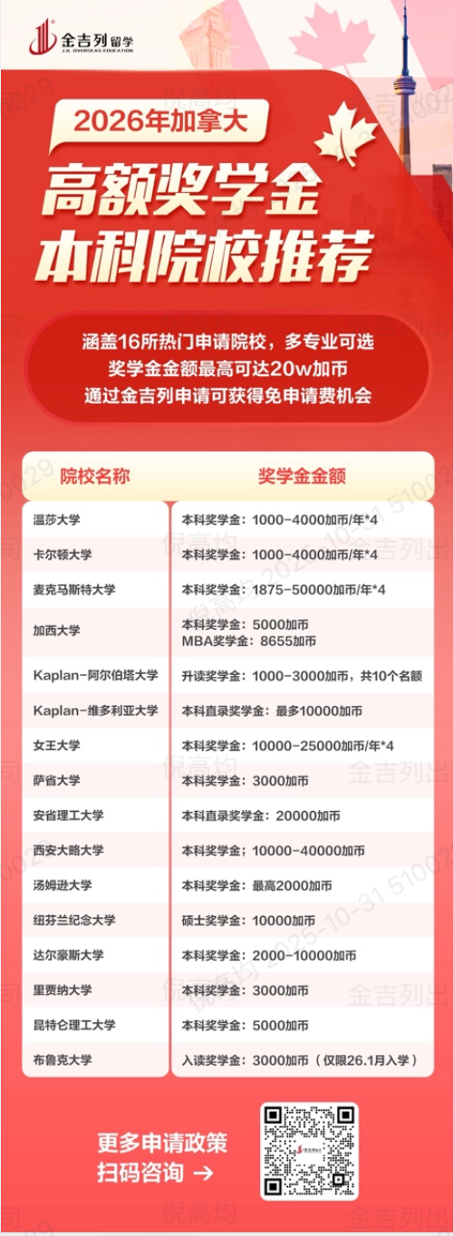2026加拿大本科奖学金来袭;申请2026年入学的同学 把握好机会哦
