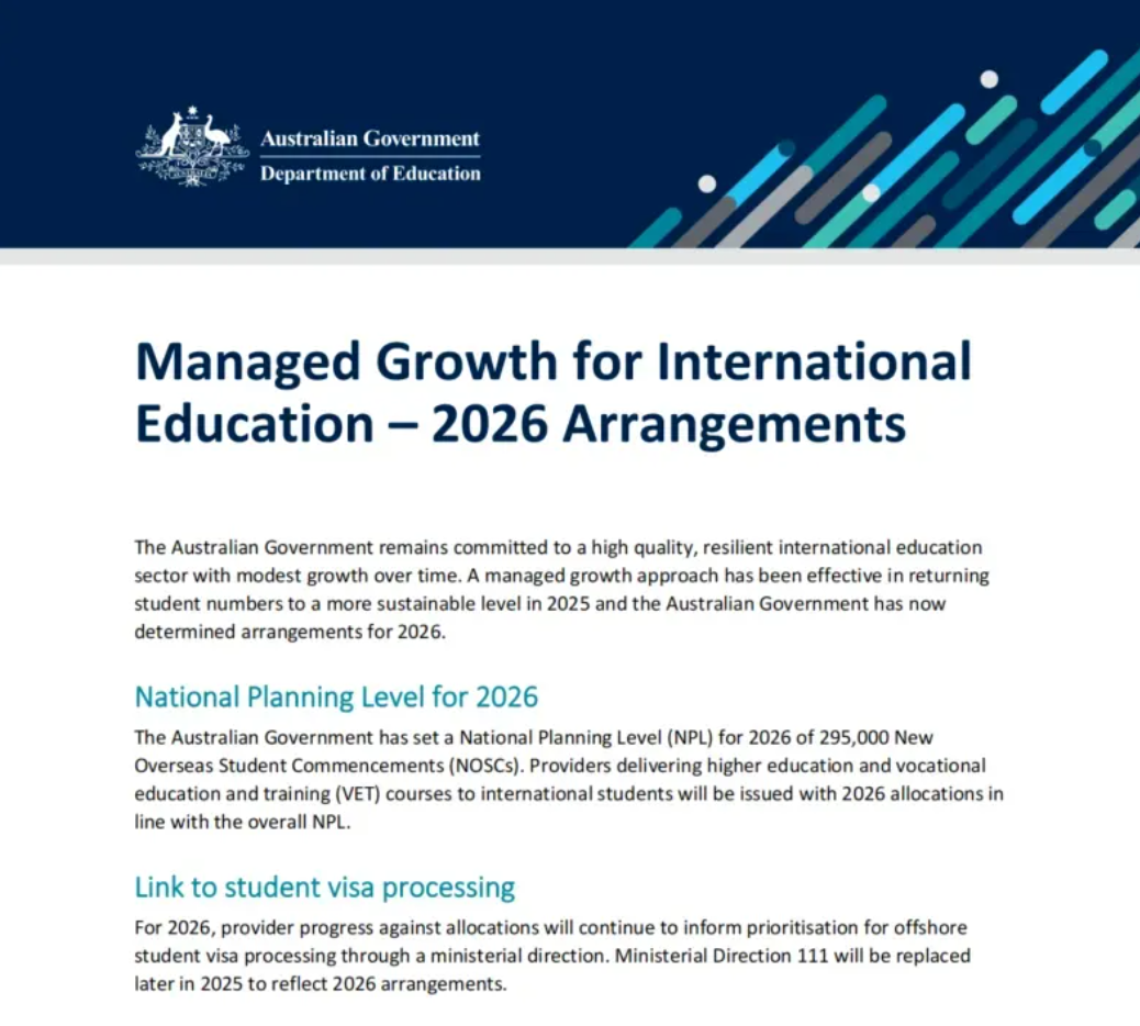 近日,澳大利亚政府提交《2025年教育立法修正案》, 正式取消留学生人数上限 ,转向强化教育质量监管。