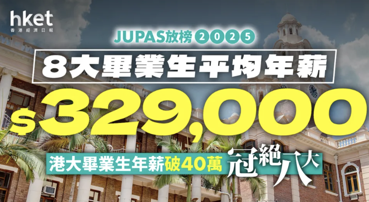 数据显示,去年八大毕业生平均年薪达到32.9万港币(≈30.12万rmb),月入近2.75万港币(≈2.5万rmb)!
