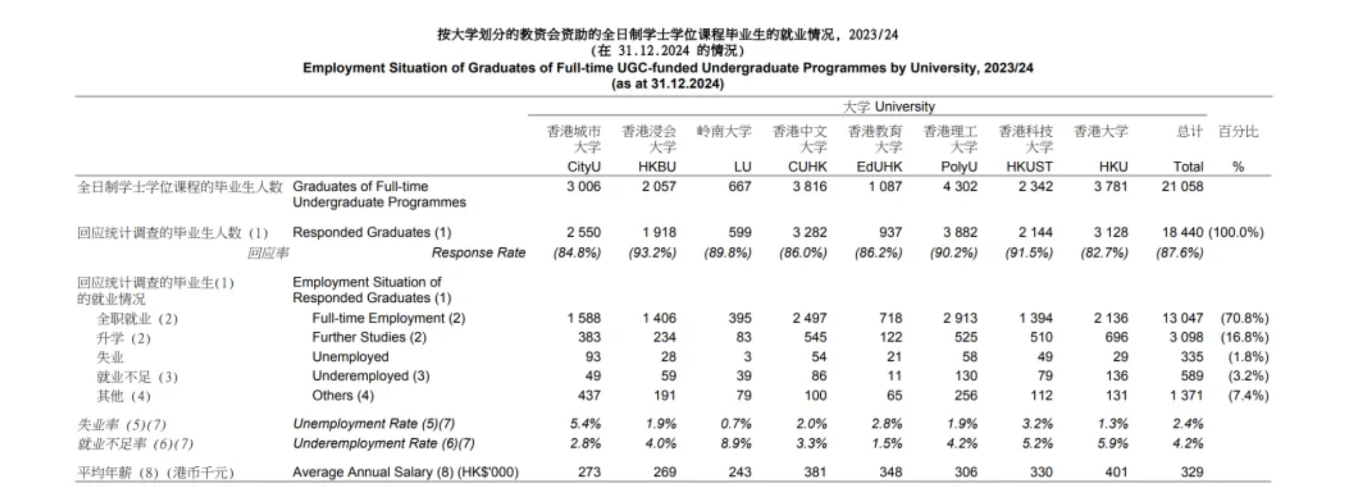 也就是说,近90%毕业生都在推进职业发展或学术提升,这也直观体现出港校毕业生的适应力与综合竞争力。