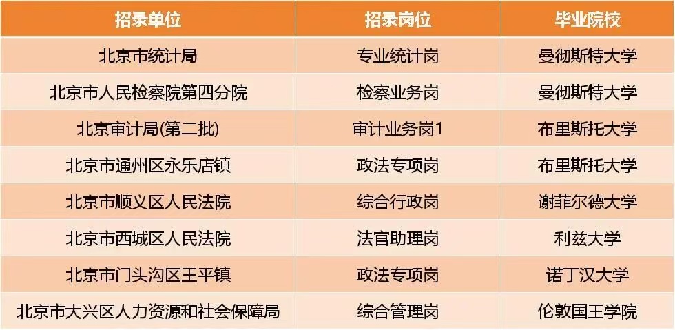 那么,在此次的北京市公务员拟录取中,英国留学生中,哪些大学毕业生更受青睐呢?